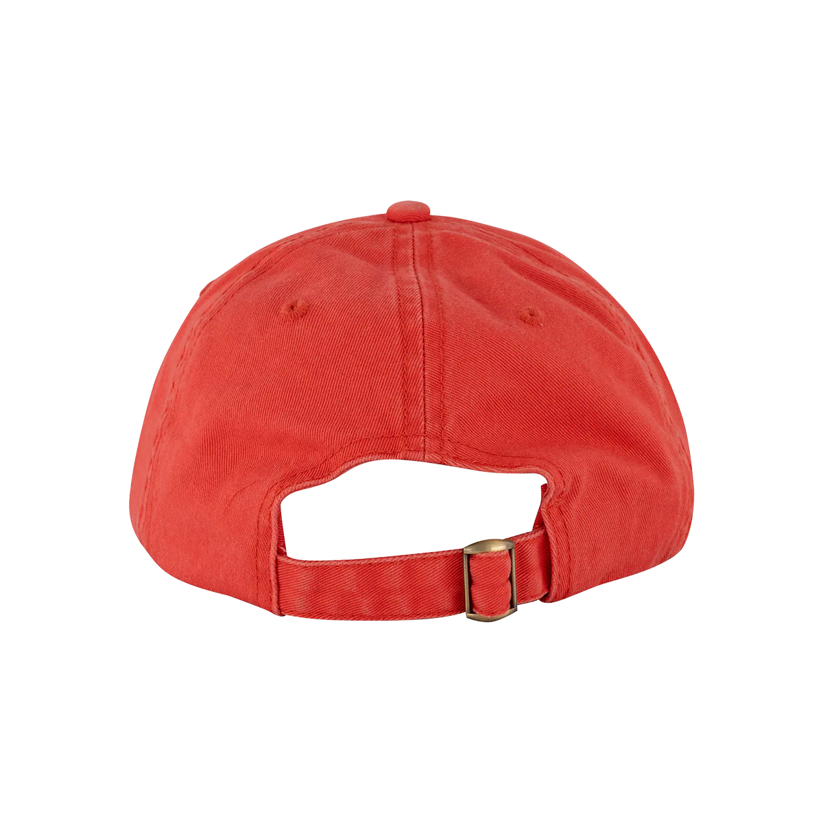 Faces smiley design embroidered on a coral six-panel hat with adjustable buckle enclosure.