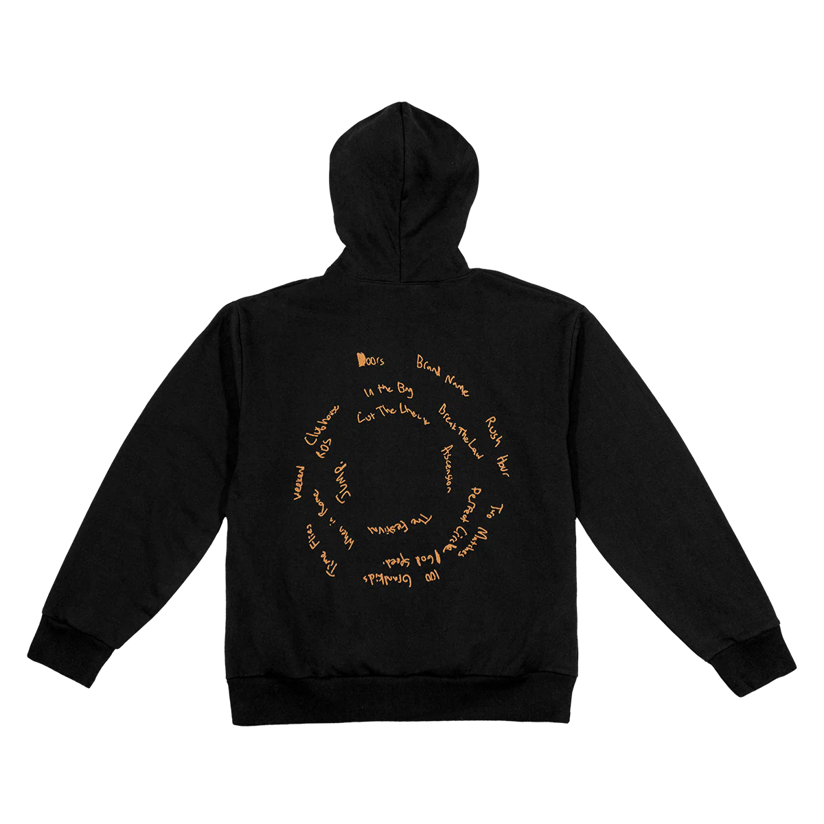 GO:OD AM DESIGNS PRINTED WITH RAISED PUFF PRINT ON THE FRONT AND BACK OF A BLACK UNISEX HOODIE.